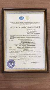 У листопаді 2018 року пройшов аудит (перевірка) на відповідність розробленої системи управління якістю міжнародним вимогам стандарту ISO-9001. Аудит було проведено незалежним органом сертифікації – ДП «Київоблстандартметрологія».